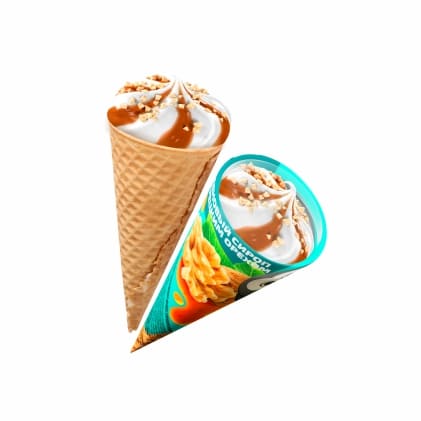 Пломбир с разными вкусами в вафельном сахарном глазированном рожке.